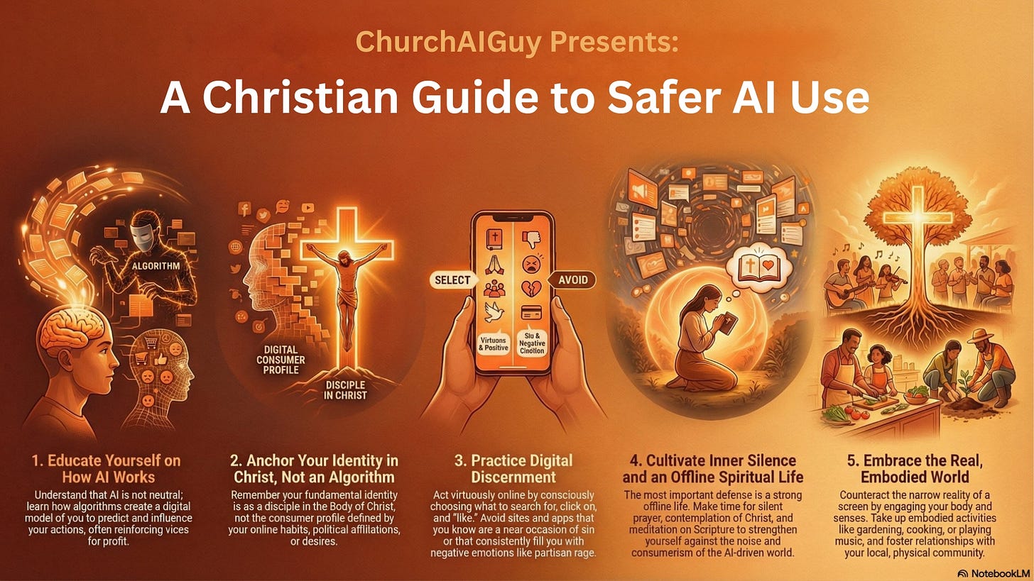 As I waded into this topic of privacy and harms specific to Christians, it led me to use NotebookLM to synthesize a large body of sources. From those sources, I had it create the infographic above. I will use the five points it generated as a skeleton for this article.