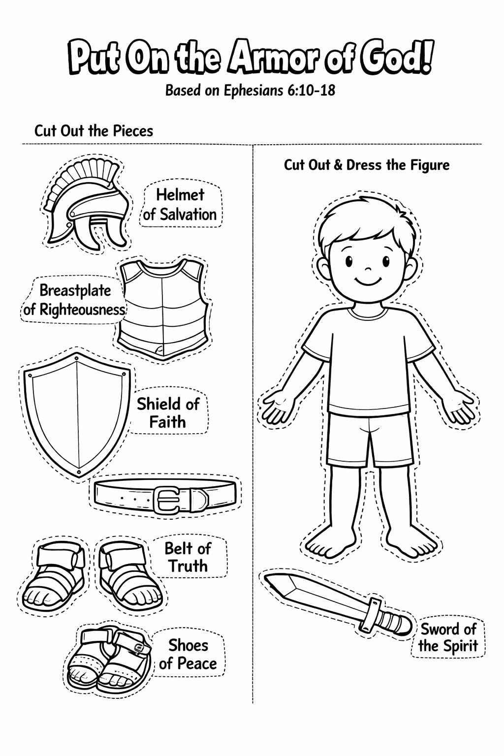 Generate a craft suitable for an 8 year old that is based on the Bible and features cut outs, needs to be cut out and colored and has accompanying instructions on how to complete the craft.